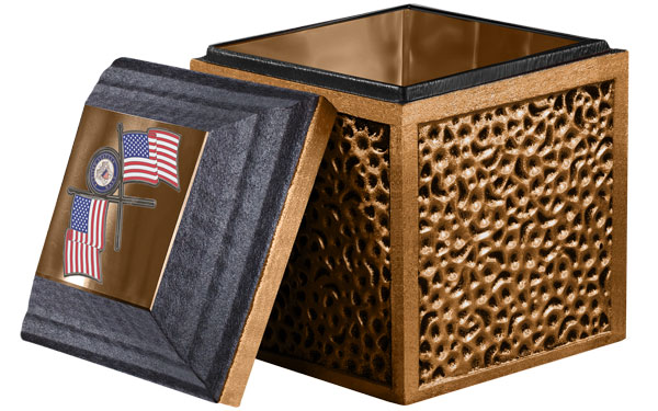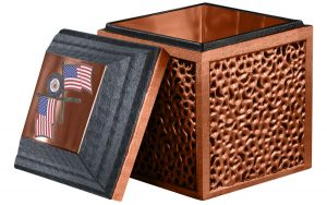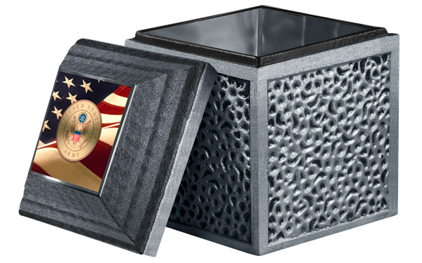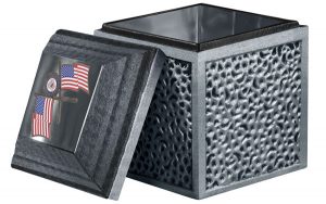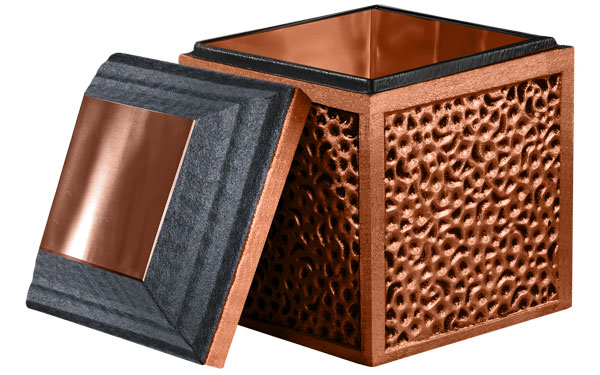 Complete the look with a matching, metal cover. Choose stainless steel, cooper or bronze. These fine metals are a wonderful background for personal photos, military honors or words of endearment. Combined with a reinforced concrete core, the Reflection is a picture of enduring strength and beauty.